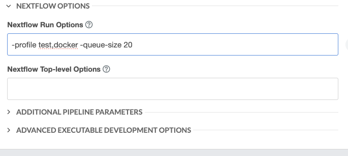 5. Scroll down and in **'Nextflow Options'**, **'Nextflow Run Options'**