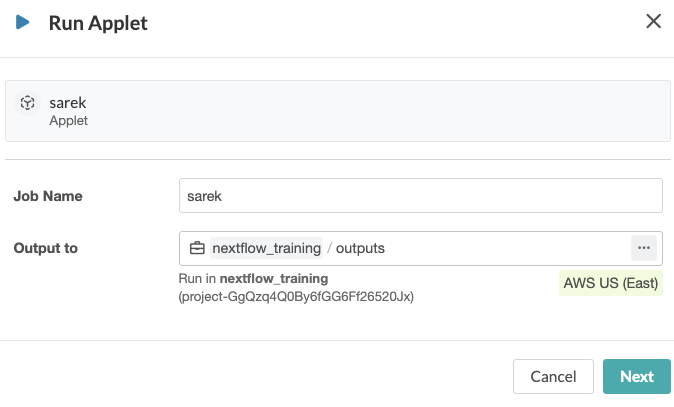 This approach is useful for building pipelines that you have built yourself into Nextflow applets and for pipelines that you do not have in a github repository.