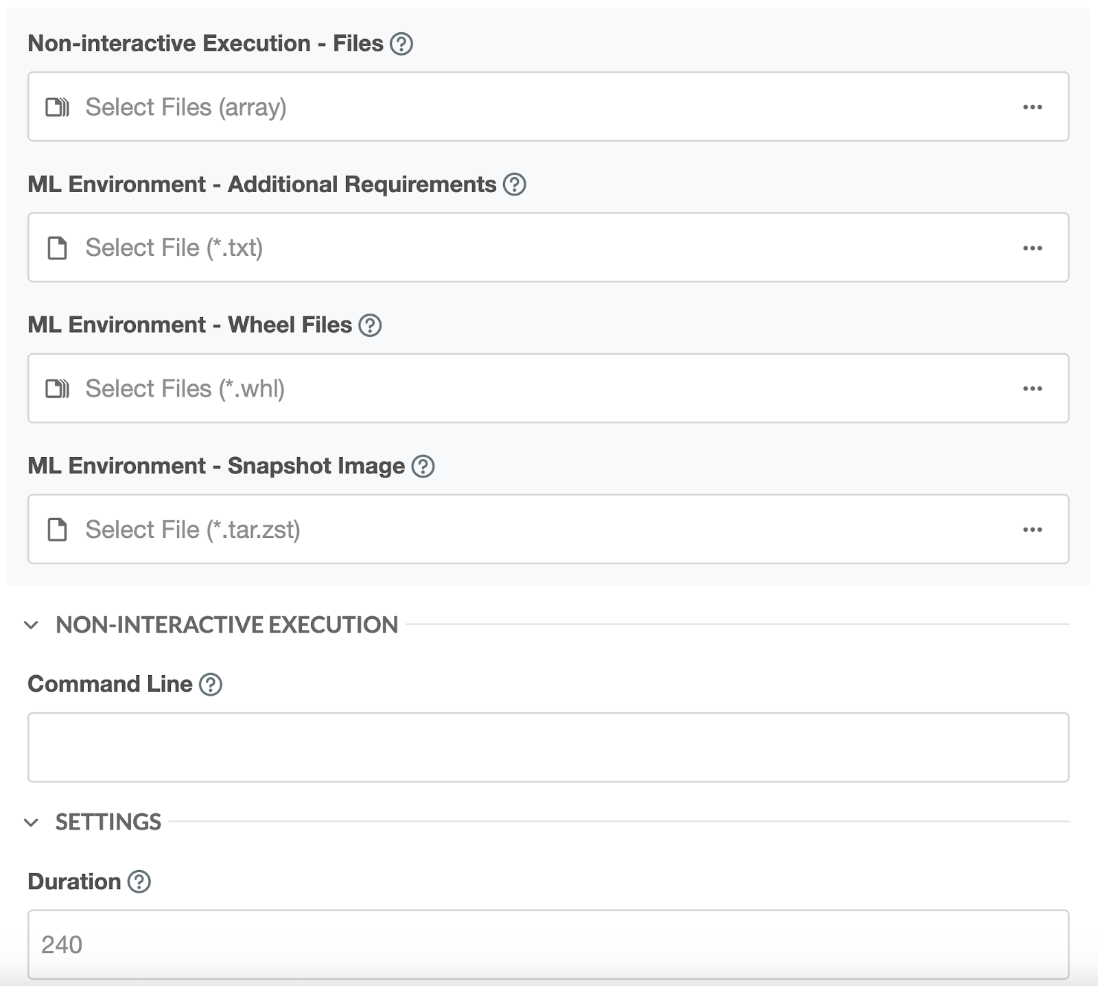 * Command Line: Enter a custom command to run the job in non-interactive mode.