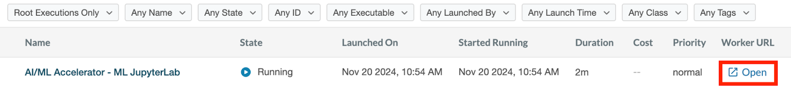<figure><img src="https://1979569080-files.gitbook.io/~/files/v0/b/gitbook-x-prod.appspot.com/o/spaces%2FPtCOm9rXoRi4P9rh1ET8%2Fuploads%2FpKMvEaD5kE5kivxKgefs%2FUse%20the%20Open%20button%20in%20the%20Worker%20URL%20to%20use%20ML%20JupyterLab?alt=media&#x26;token=47fe91b0-a592-4dcb-87ad-51270691a26d" alt=""><figcaption></figcaption></figure>